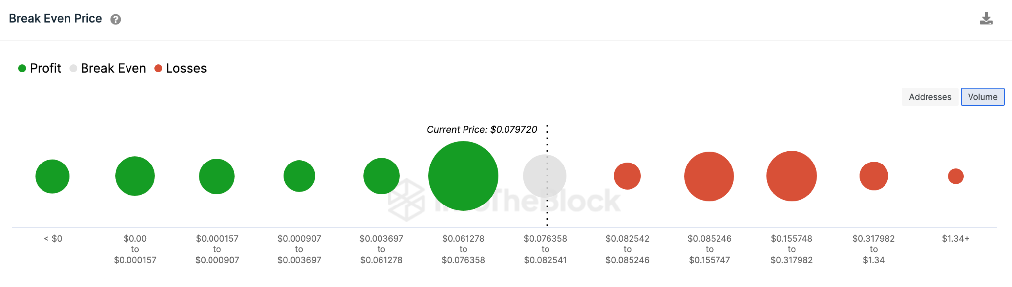 According to IntoTheBlock’s Break-Even Price distribution data, Dogecoin bears will likely force a DOGE price downsizing to $0.076. Which remains the last major support before further downside can continue.