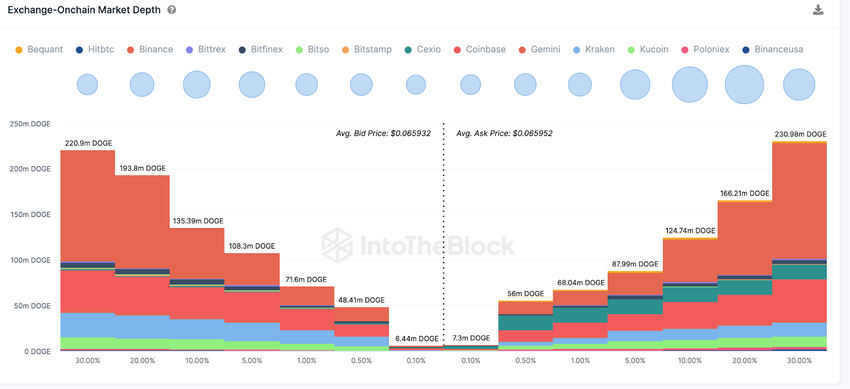 As depicted below, the traders have placed active orders to buy 782 million DOGE coins. Meanwhile, there are only active sell orders for 740 million DOGE.