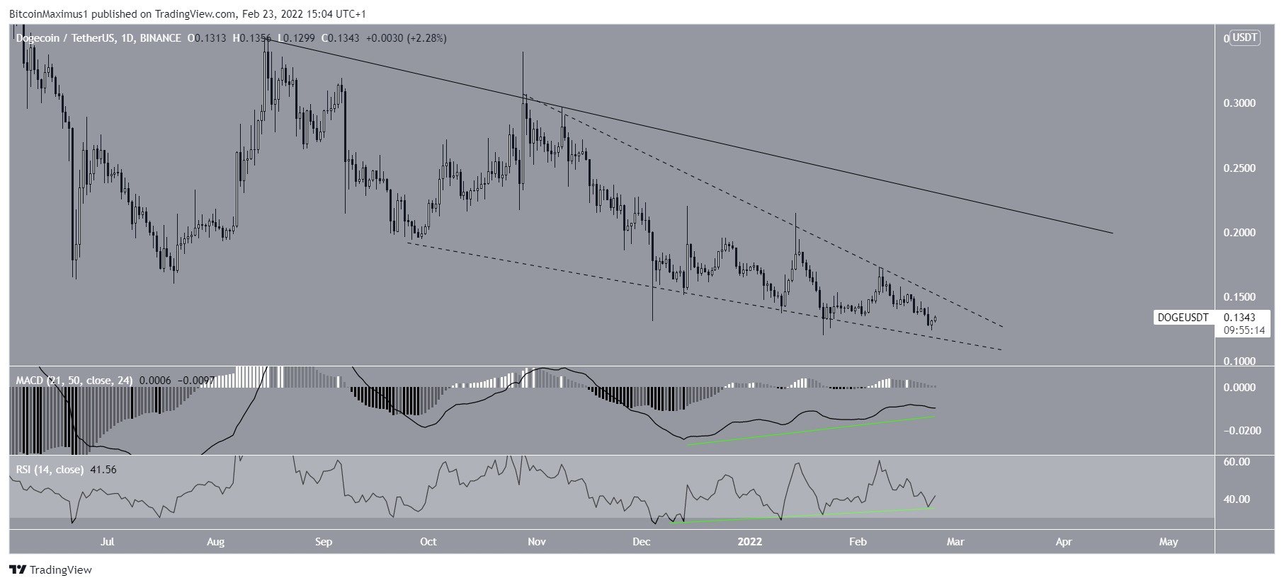 Furthermore, there is a very significant bullish divergence that has developed in both the RSI and MACD. This is an occurrence that very often precedes bullish trend reversals. Therefore, it supports the scenario in which DOGE breaks out from the wedge.