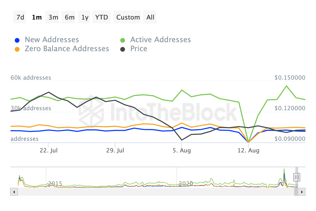 Beyond this surge, both active and new addresses on Dogecoin’s network have risen since last week. Active addresses reflect the number of users completing transactions, indicating increased blockchain usage and a bullish outlook. A decline would signal a bearish trend.