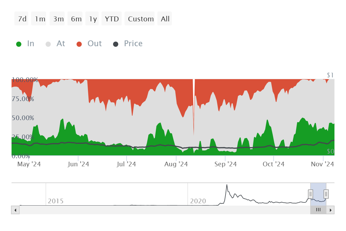 SponsoredThe elevated level of profitable addresses suggests caution for investors looking for further gains. If a significant number of holders choose to cash out, it could hamper Dogecoin’s upward trajectory, adding selling pressure that might prevent DOGE from achieving its next price milestone.