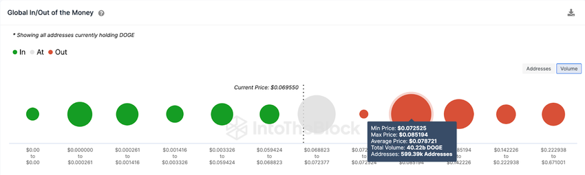 SponsoredHowever, the bulls currently face a major obstacle around the $0.078 range. At that zone, 600,000 investors had bought 40.22 billion Dogecoin at an average price of $0.078. They could invalidate the DOGE, XRP price correlation trend if they chose to book profits.