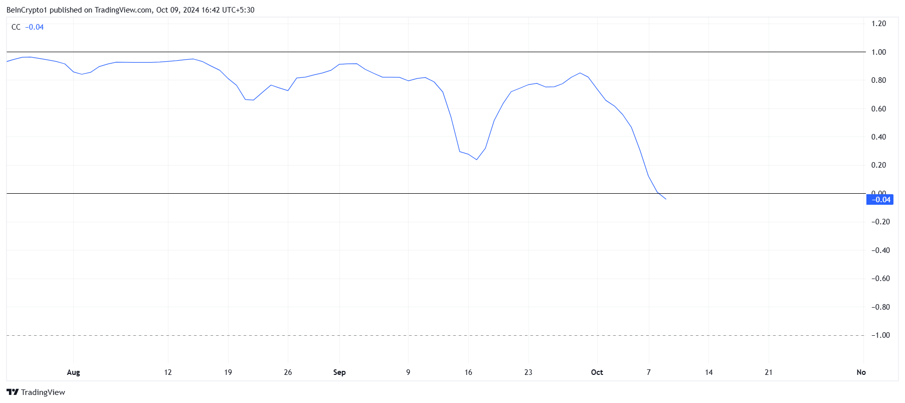WIF is currently sharing a negative correlation with Bitcoin, which is often considered a bearish sign for altcoins. However, this situation is playing out differently for Dogwifhat.