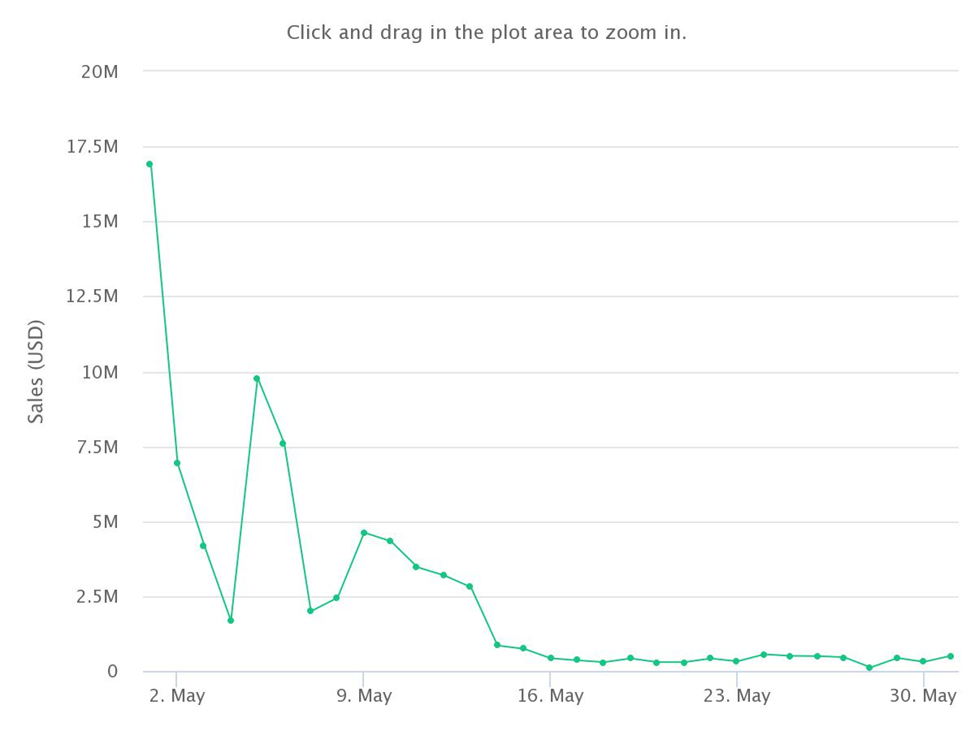 By garnering less than $30 million in sales for the first time, the collection made a higher low in June — a $106.72 million drop from January.