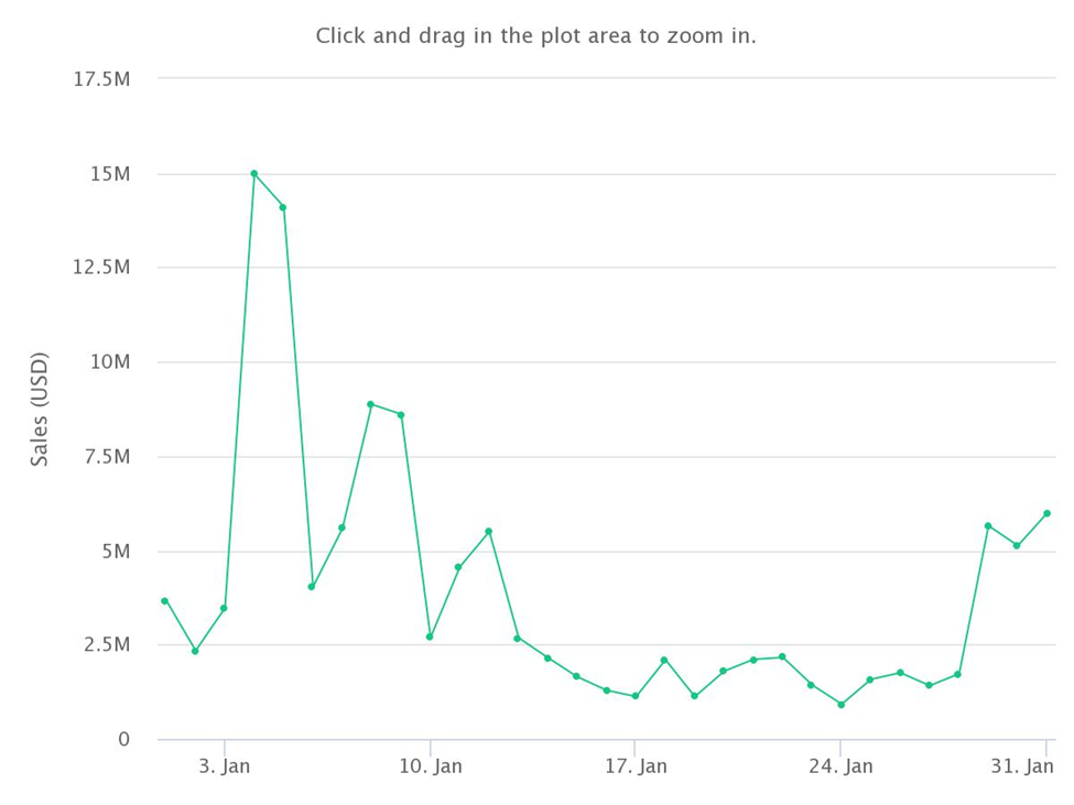 Doodles’ sales volume during the first month of the year was approximately $122.11 million.