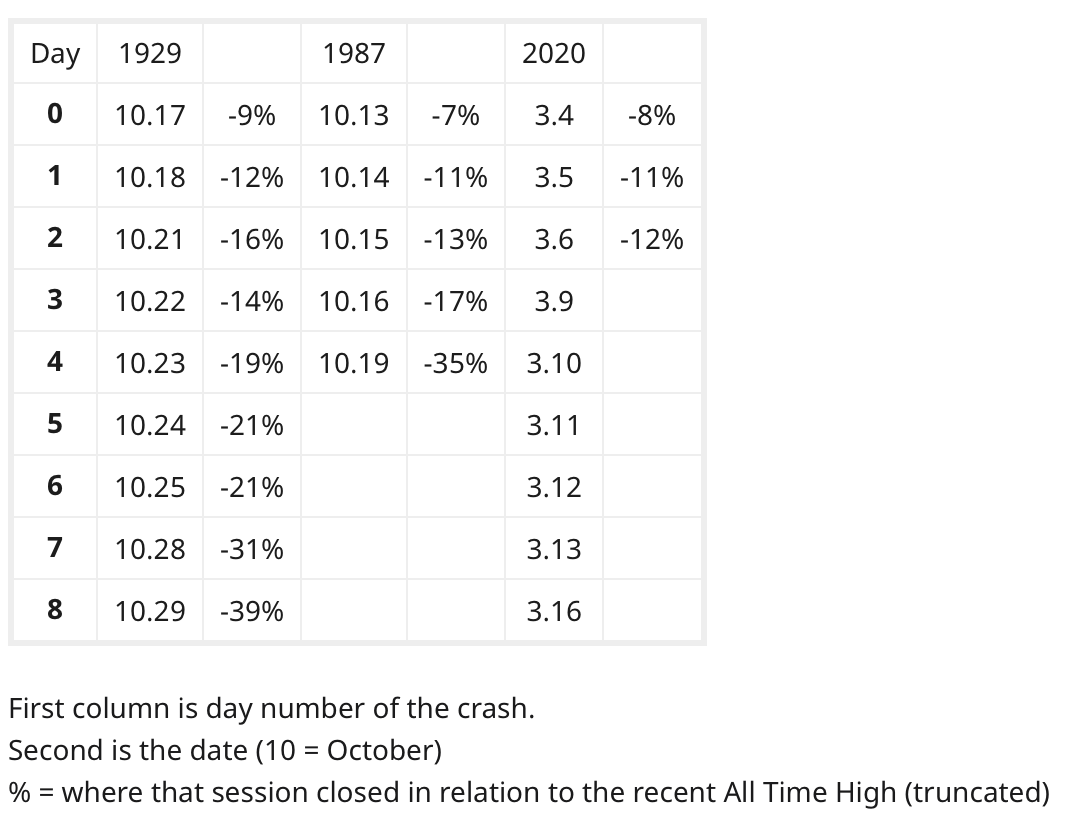 SponsoredSince March 4, the Dow Jones has dropped 12% from its most recent all-time high in a span of just three days. For comparison, during the 1929 ‘Great Crash’ the Dow Jones dropped 16% in this same period. During the 1987 ‘Black Monday’ crash, it dropped 13%.