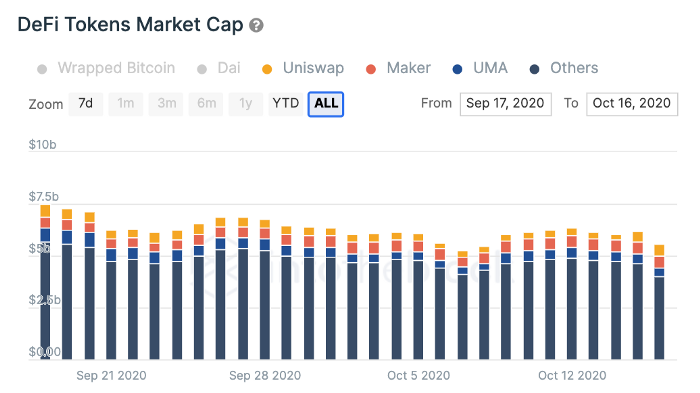 Once virtually the sole headline maker in the market, the Defi space is now experiencing a pause in its growth. The DeFi market was on a particularly strong growth trajectory in the months following the broader cryptocurrency market crash in March 2020. DeFi investor interest peaked in September when Uniswap’s monthly trading volume surpassed that of Coinbase Pro.