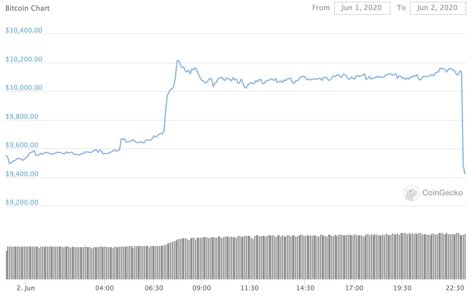 Despite the sudden outpouring of bullishness on Twitter, Bitcoinâs latest visit above the $10,000 mark was very brief. Having peaked at almost $10,170 just before midnight universal time (UTC), BTC traded comfortably in five figures for around half a day before suddenly losing all those gains, and then some.