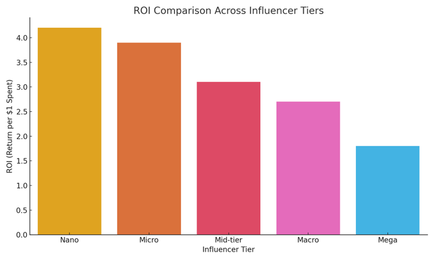 - Nano Influencers (1K–10K): ~4.2x ROI