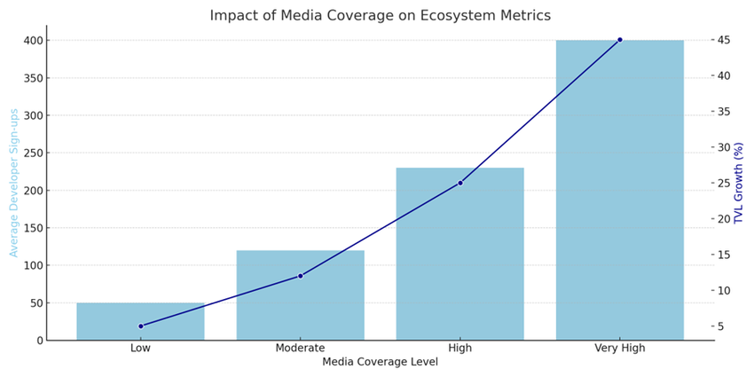 - Higher media coverage directly correlates with a sharp rise in both developer sign-ups and TVL growth.