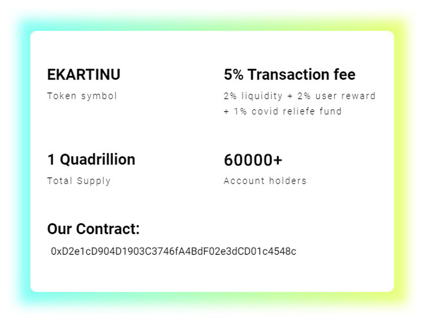Ekart Inu aims to be one-of-a-kind merchandise to the global market with minimal transaction fees without any financial borders, intermediaries, or annoying bureaucratic routine. Ekart Inu will be a revolution in the retail and e-commerce industry, a platform where you can purchase and invest at the same time without any hassle.