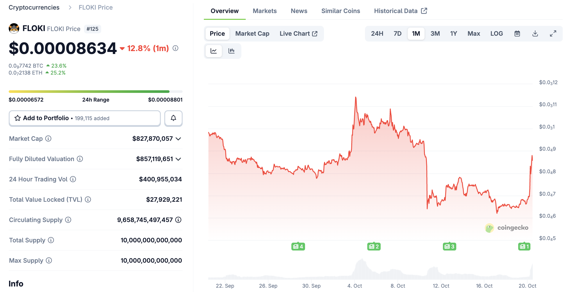 With this new post, however, FLOKI rallied around 30%, recovering much of the lost gains from the crash: