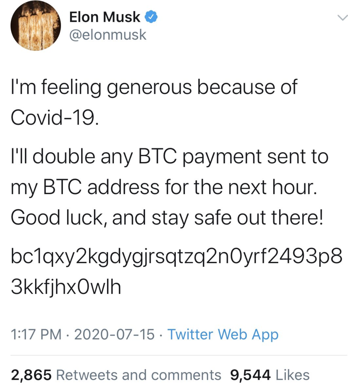 The hack extends beyond just crypto Twitter. Famous car manufacturer Elon Musk saw his account hacked, offering double returns for anyone willing to part ways with their BTC.Â