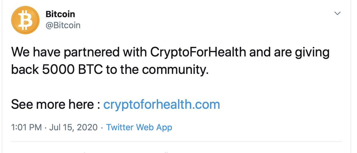 It seems like some Twitter API posting service has been compromised and being used to send out fake "giveaway" tweets from popular crypto/blockchain accounts. "CryptoForHealth" is a scam.