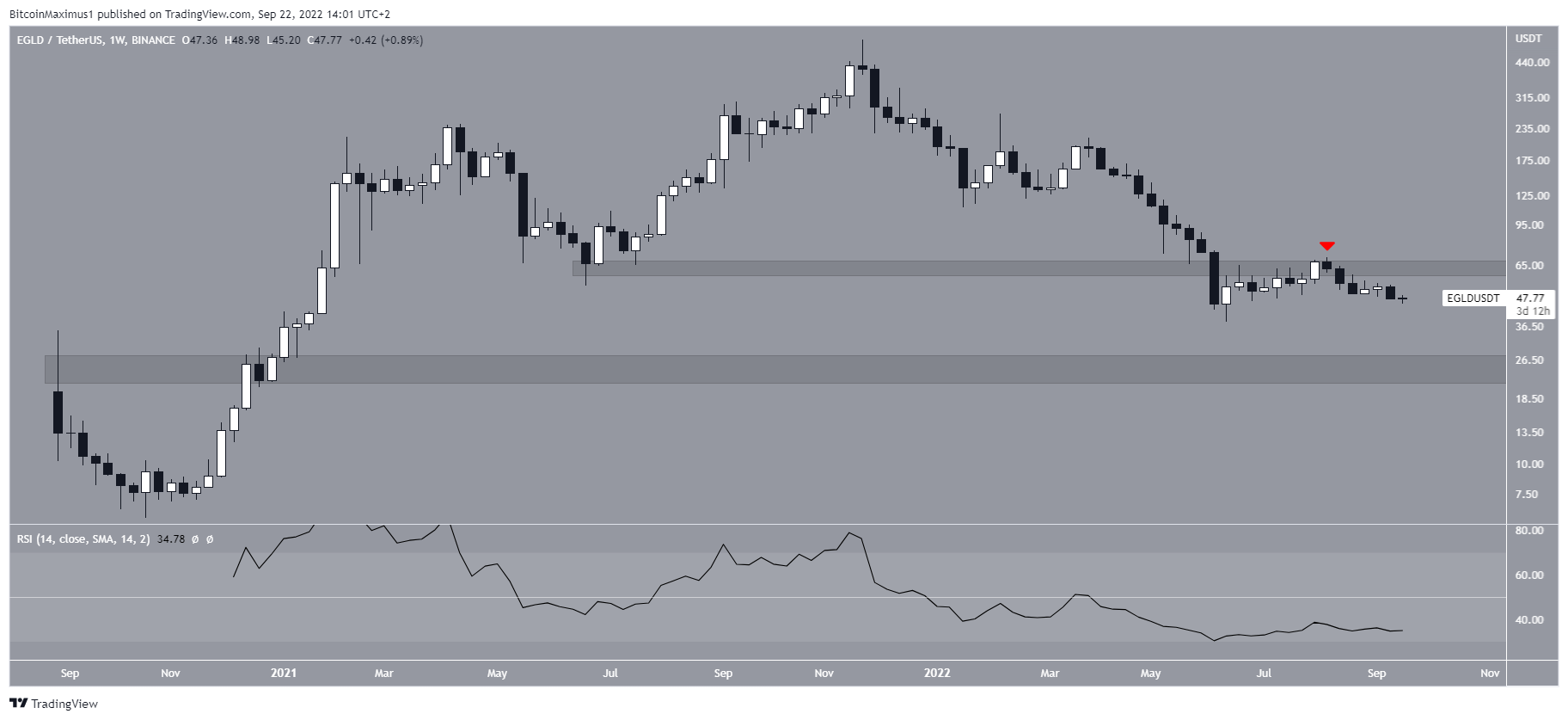 EGLD has been decreasing very gradually since Aug. 16, creating a descending wedge pattern in the process. The descending wedge is considered a bullish pattern. So, an eventual breakout from it is expected.