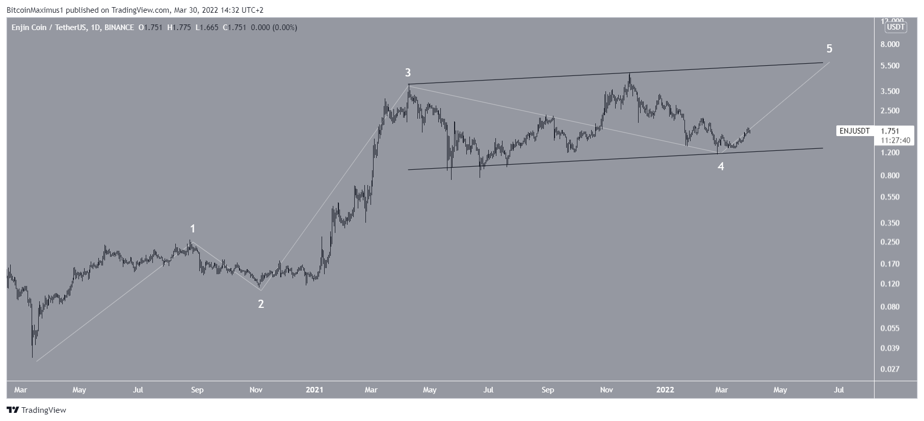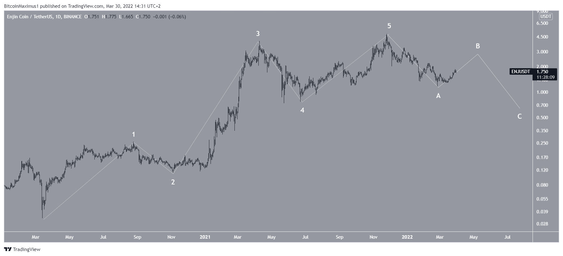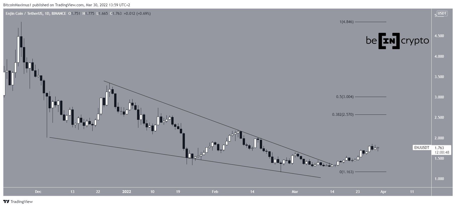 ENJ has been falling since reaching an all-time high of $4.84 on Nov 25. The downward movement continued until the price reached a low of $1.15 on Feb 24.