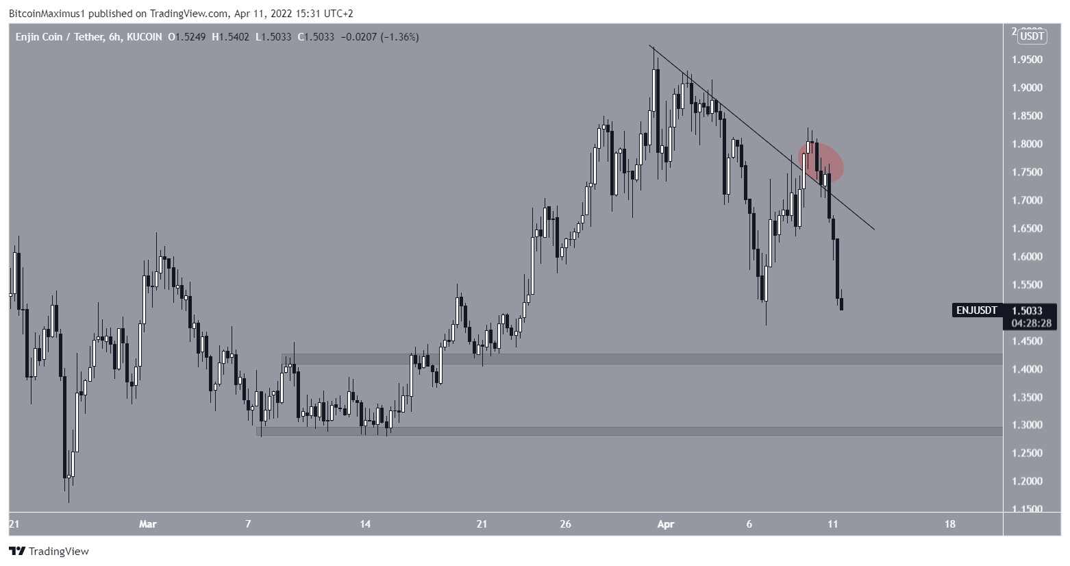 ENJ is currently approaching its Jan 24 lows once more.