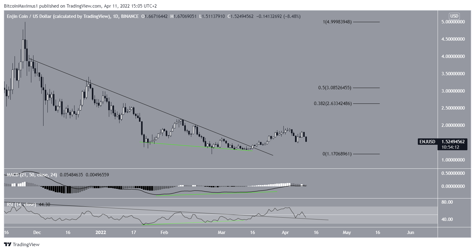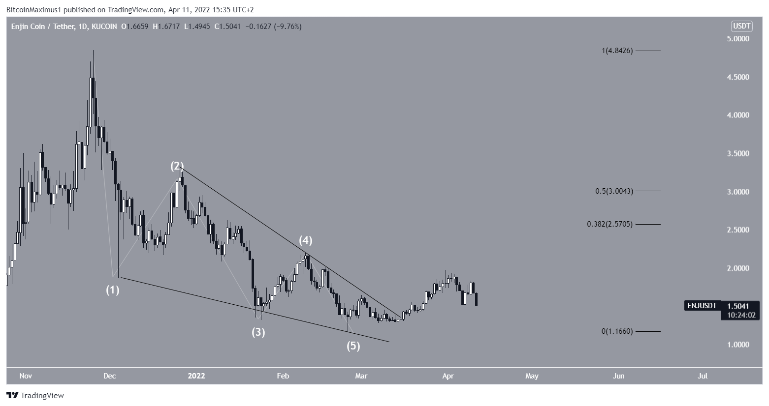 ENJ has been falling since reaching an all-time high price of $4.84 on Nov 25. So far, the downward movement has led to a low of $1.15 on Feb 24.Â
