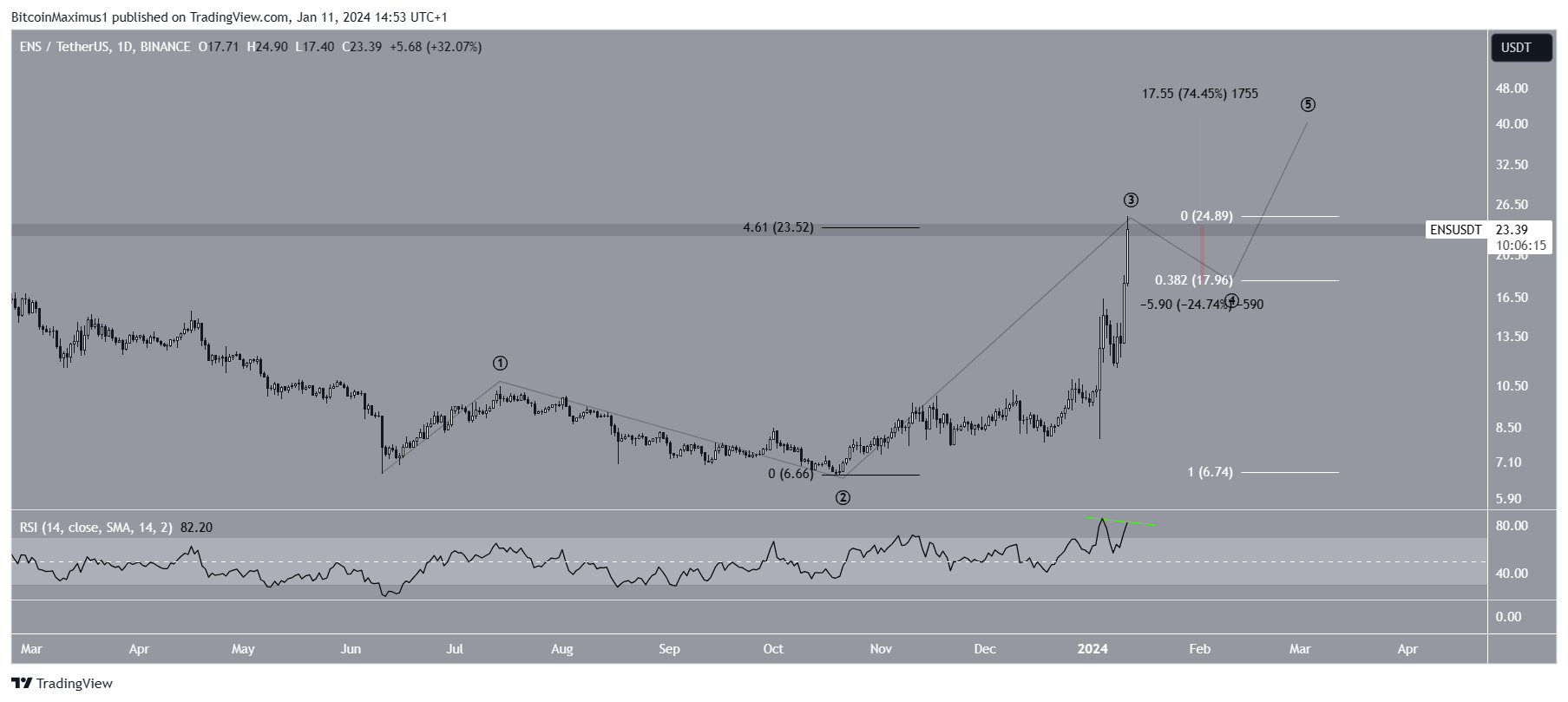 The technical analysis from the daily time frame suggests that the ENS trend is bullish, but a local top may be reached soon. This is because of the wave count and RSI readings.