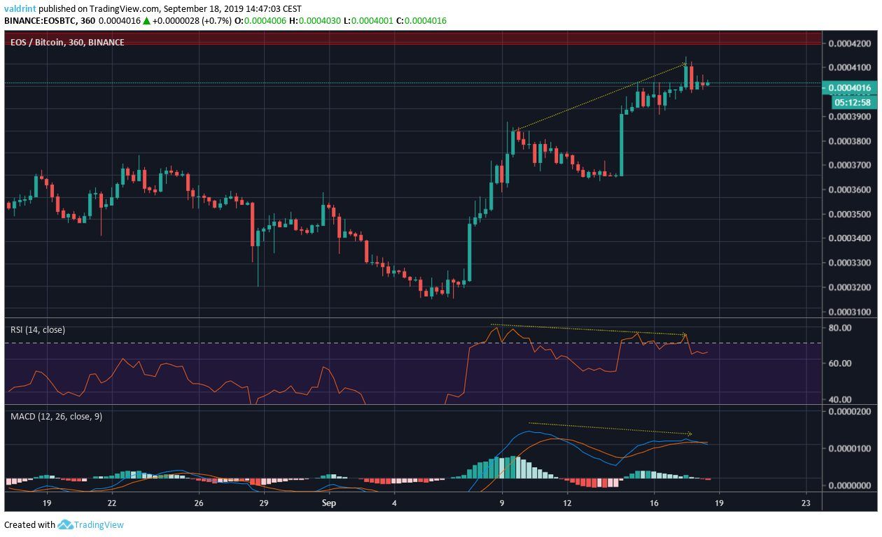 Both of them have been generating bearish divergence since EOS reached the first high on September 9.