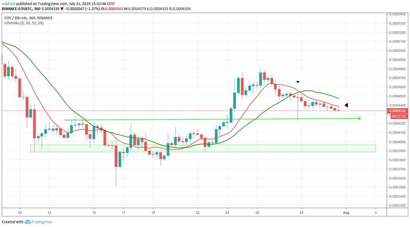 The EOS price increased until it reached values of 4800 satoshis, before beginning to reverse.