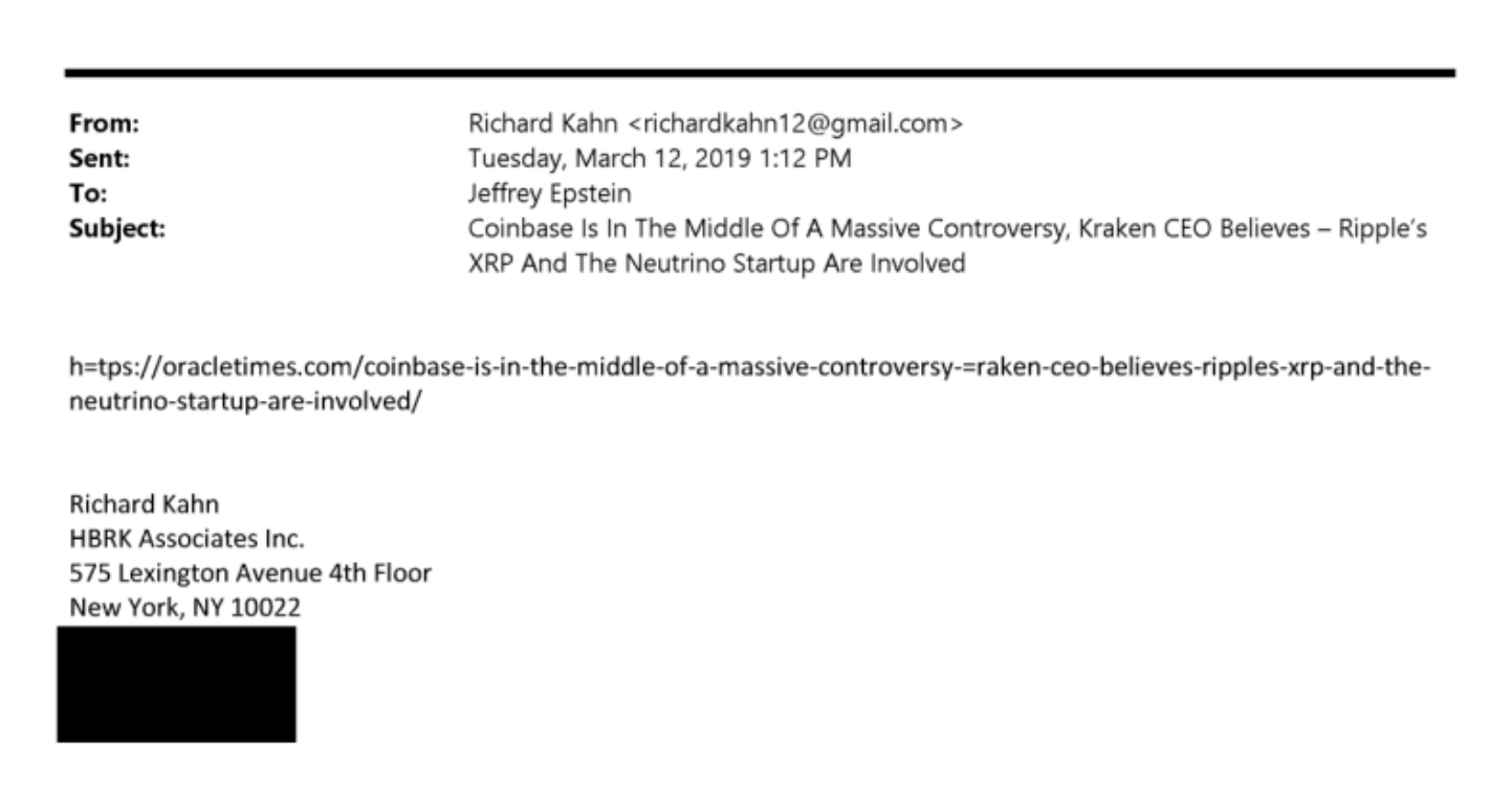 Newly released Epstein files show that Jeffrey Epstein received an email in March 2019 highlighting what was described as a “massive controversy” surrounding Coinbase and its acquisition of blockchain analytics firm Neutrino.