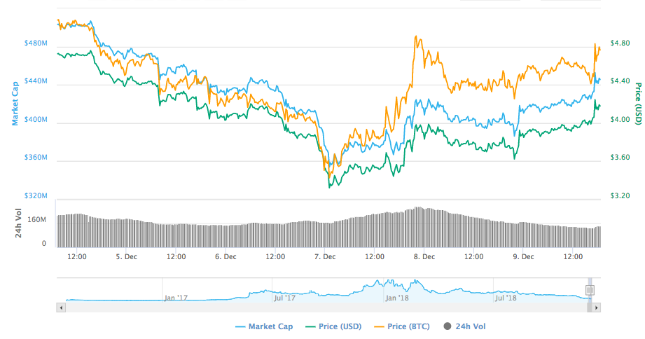 Throughout the year, ETC smashed through several long-standing supports and reached lows not seen since April 2017. As it stands, Ethereum Classic remains on a downtrend, currently sitting however around $3-$4, potentially ending the year sub $3 if the trend continues.