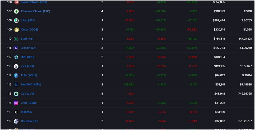 The latest metric has seen the chain rise above others such as Dogecoin, Lachain, Crab, Ubiq, and Polis.