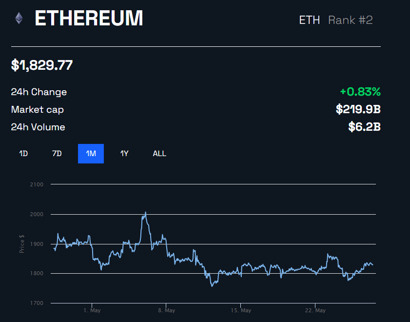 Since withdrawals were enabled, ETH peaked at over $2,000 in Early May before dropping to its current levels. Since then, the asset has mostly traded above $1,800.