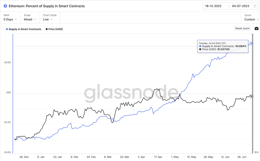 According to Glassnode, ETH Staking reached an all-time high in May 2023. But last month, investors continued to lock up more coins, raising the mark even further.