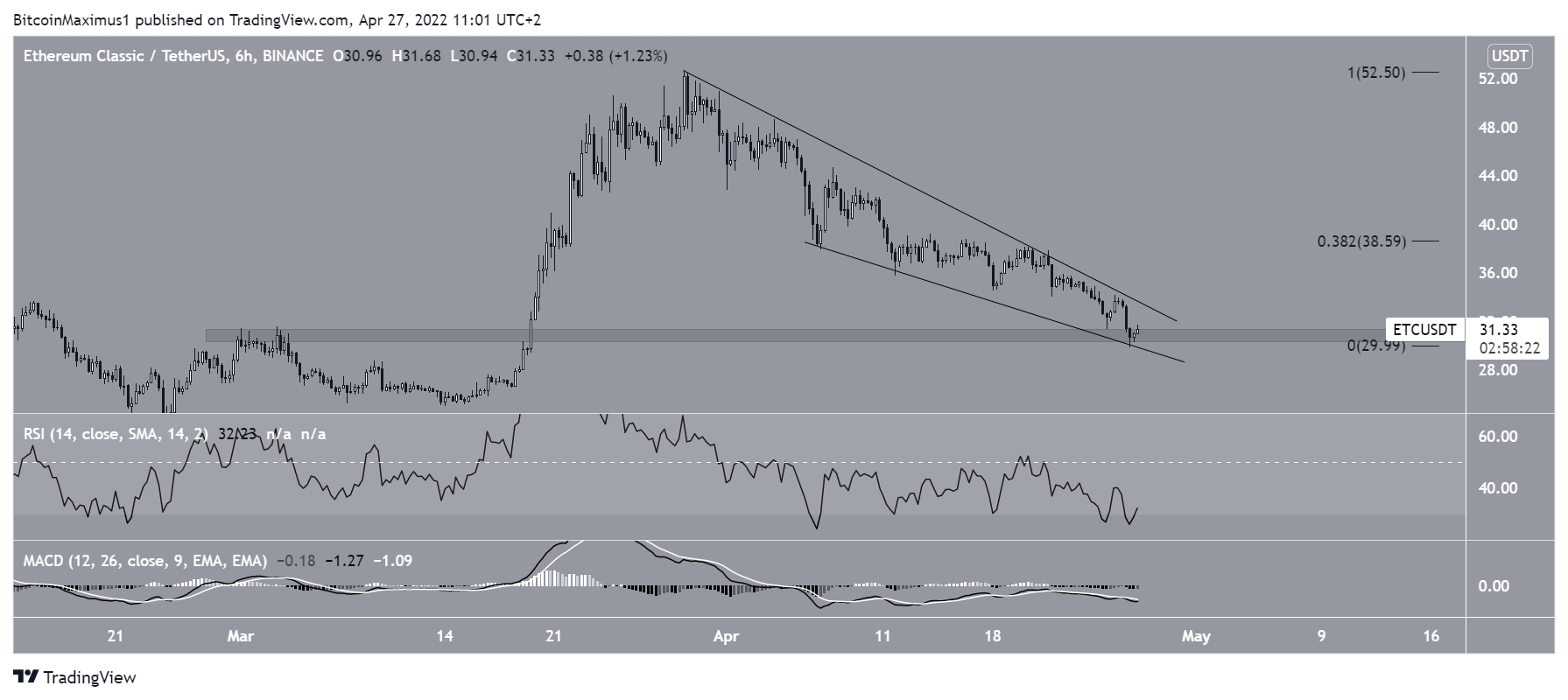 Additionally, ETC has reached the minor $31 horizontal support area.Â