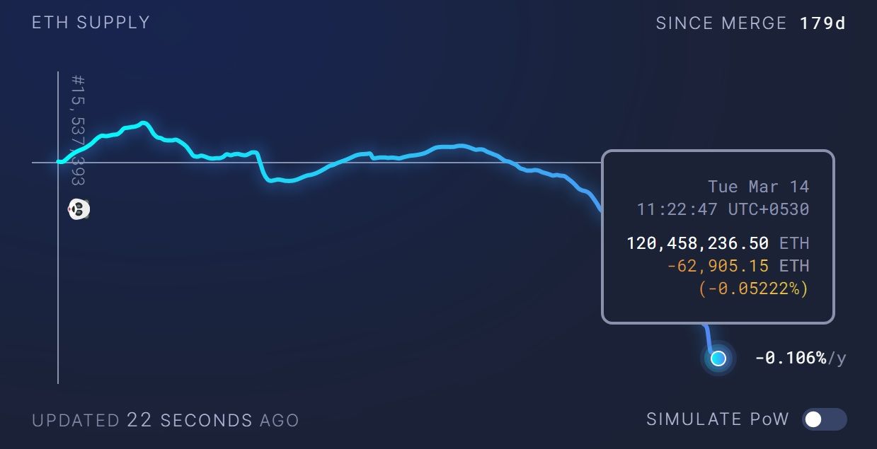 Deflation on the Ethereum network is ramping up as the supply has dropped to a record low six months after The Merge. Since the milestone event happened just under six months ago, the ETH supply has dropped by nearly 63,000. The current supply stands at about 120.45 million ETH.
