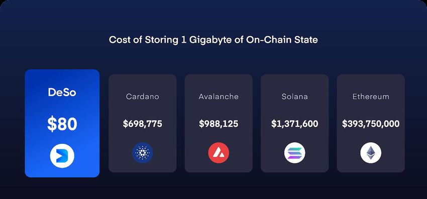 DeSo is also capable of supporting unique social features leveraged by DAODAO, including on-chain profiles and an on-chain social graph. “It costs about $75 to store a 200-character Tweet on Ethereum and about fifteen cents to store it on Solana, Avalanche, or Polygon.