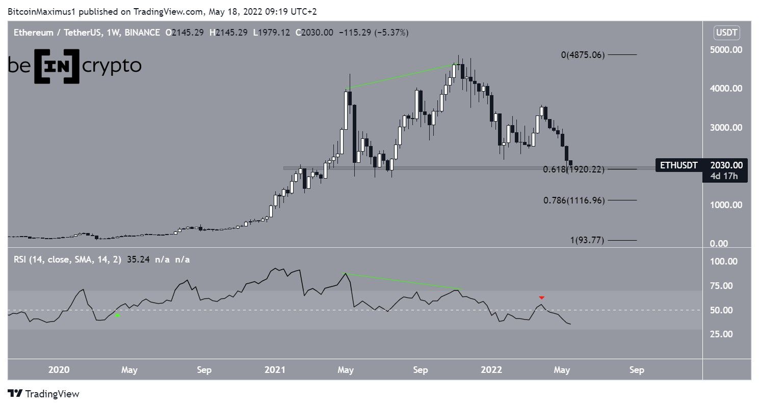 The weekly RSI first moved above 50 in April 2020 (green icon). As a result, the fact that it has now moved below 50 after two years (red icon) could indicate that ETH is in a long-term bearish trend.