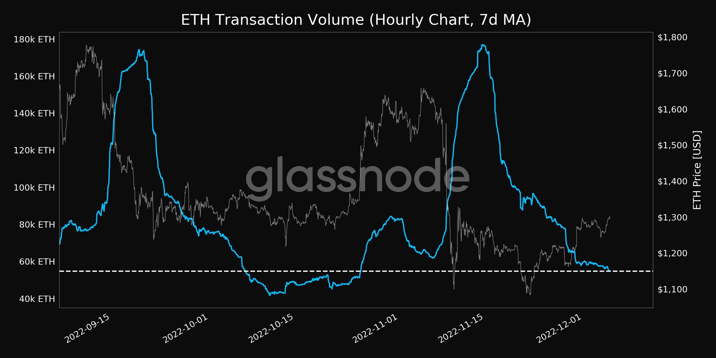 The on-chain outlook suggested that Ethereum volatility and vibrancy had dwindled. Ethereum transaction volume (7D MA) reached a one-month low of 54,673.636 ETH.