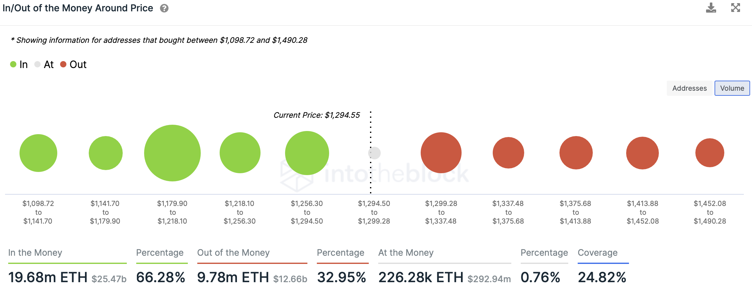 IntoTheBlock’s In/Out of Money Around Price Indicator suggested that a significant barrier lies for ETH price at the $1,317 level, where 1.82 million addresses hold 3.33 ETH.