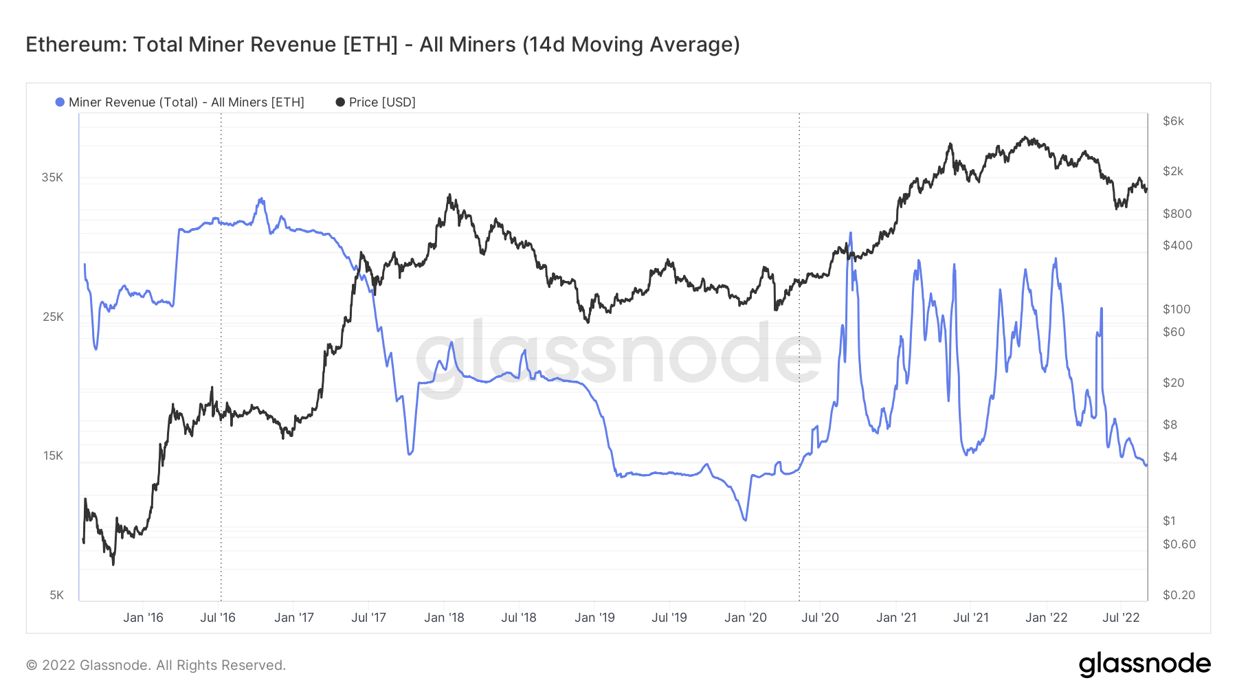 However, miner revenue is very close to a new all-time low. The only time it was lower than this was in Jan 2020.