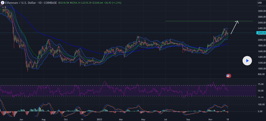 HypeManAlex, an analyst with over 50k Twitter followers, posted a bullish prediction on TradingView: “ETH is forming bullish patterns on the chart; there are also short liquidations the whales will try and liquidate. ETH retested support at $2000 and since then has bounced. Bitcoin and Ethereum ETF talks and more bullish sentiment in the markets could see prices explode to $2650 soon. I am currently LONG.”