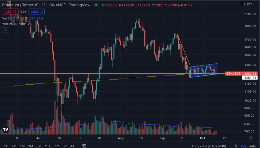 Also, ETH price is forming a bear flag which is a bearish pattern. If there is a breakdown, the price can again visit the $1000 area.