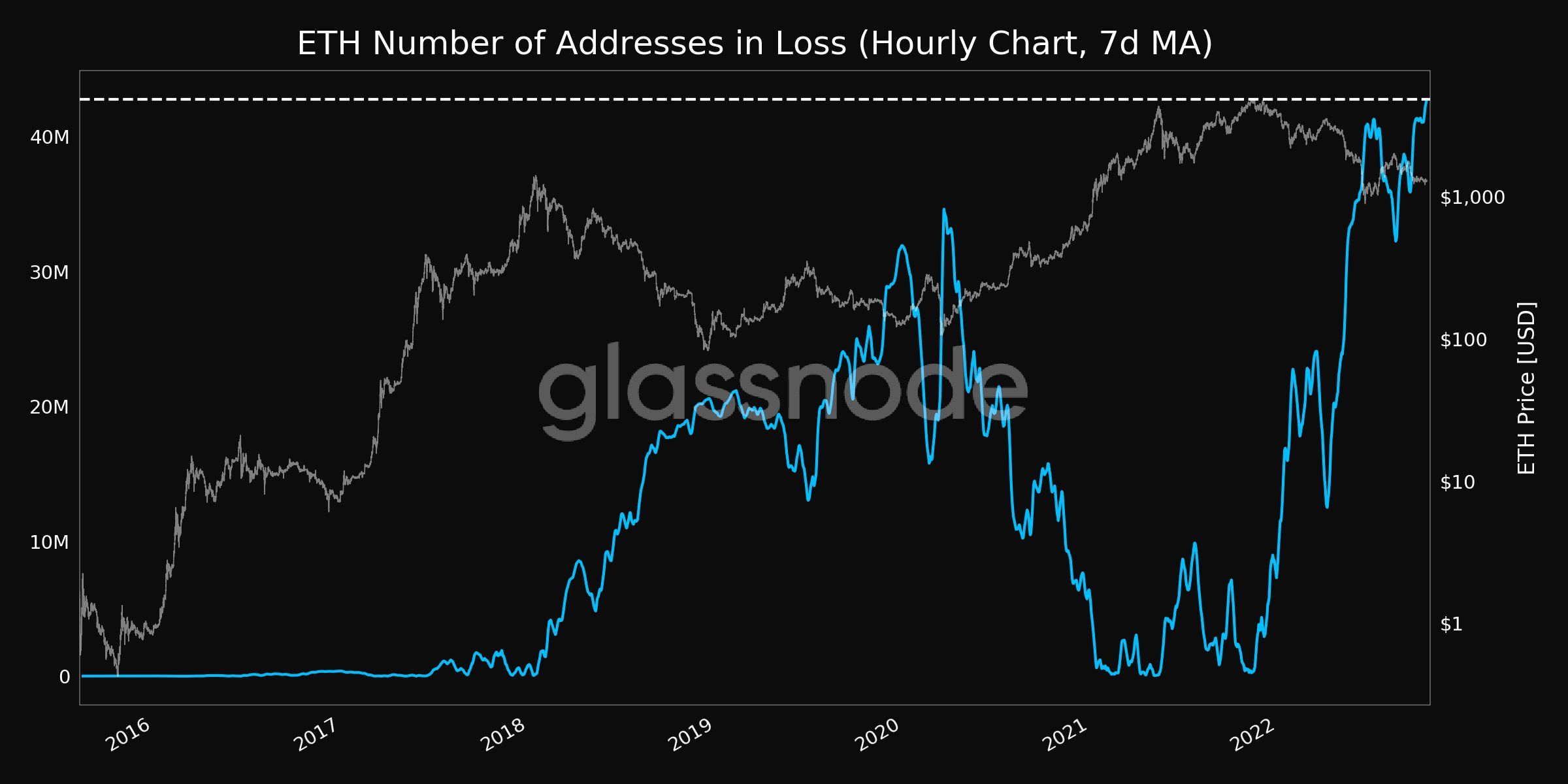 Ethereum investors seemed to be in pain. Indeed, the Ethereum number of addresses in a loss (7D MA) just reached an all-time high of 42,767,065.637.