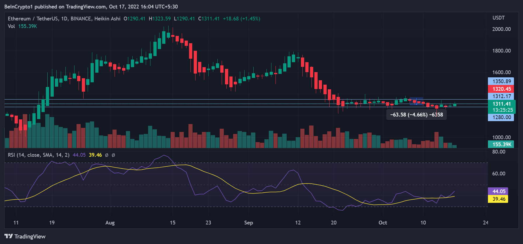 SponsoredDespite the larger market’s sluggish momentum, Ethereum saw over 2% daily gains in price as the coin traded at $1,316. While the short-term gains provided relief to investors, a true recovery still wasn’t on ETH’s cards.
