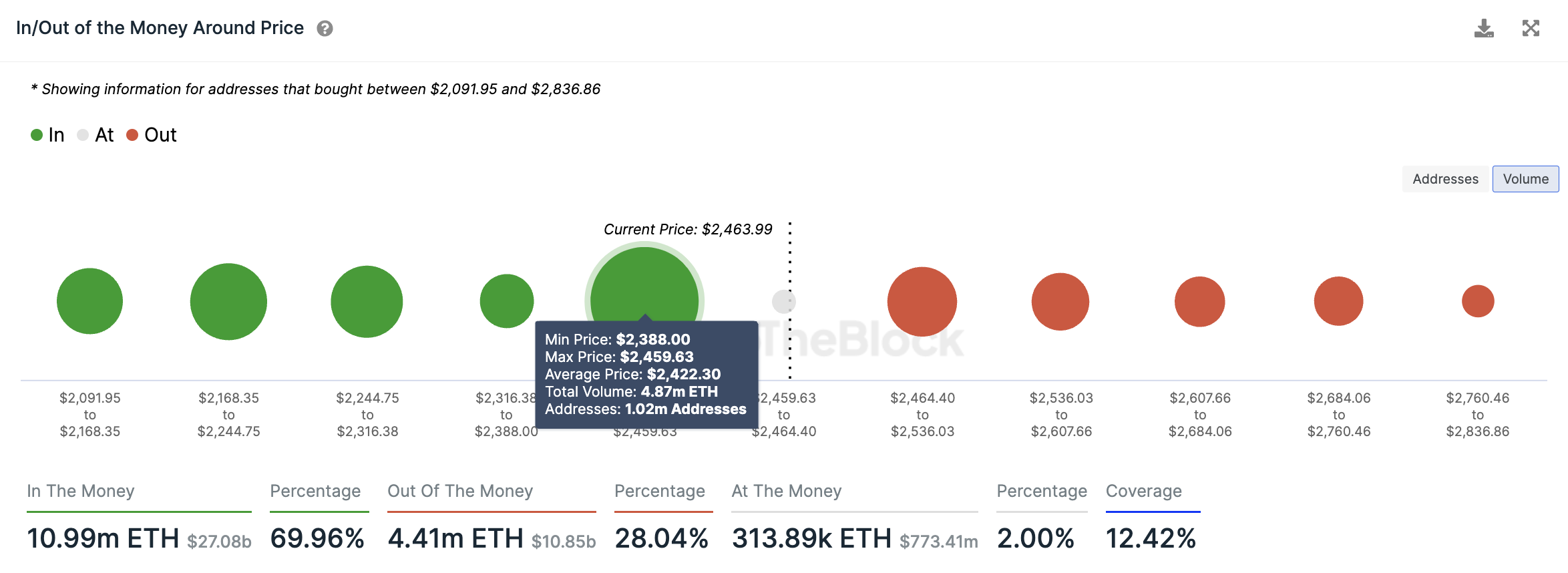 Ali Martinez, an on-chain analyst and the Global Head of News at BeInCrypto, provided insight into Ethereum’s current market position. Martinez noted that ETH is currently in a key demand zone, ranging between $2,388 and $2,460.