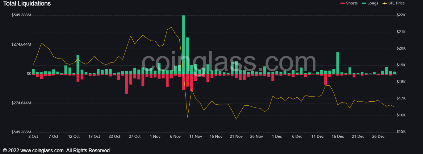 SponsoredCoinglass estimated that there was $7.69 million liquidated across all exchanges today. Technical signals also imply that the current levels of support might be lost. However, if the altcoin market booms in the new year, some analysts also expect that ETH will continue outperforming Bitcoin as market mayhem settles.