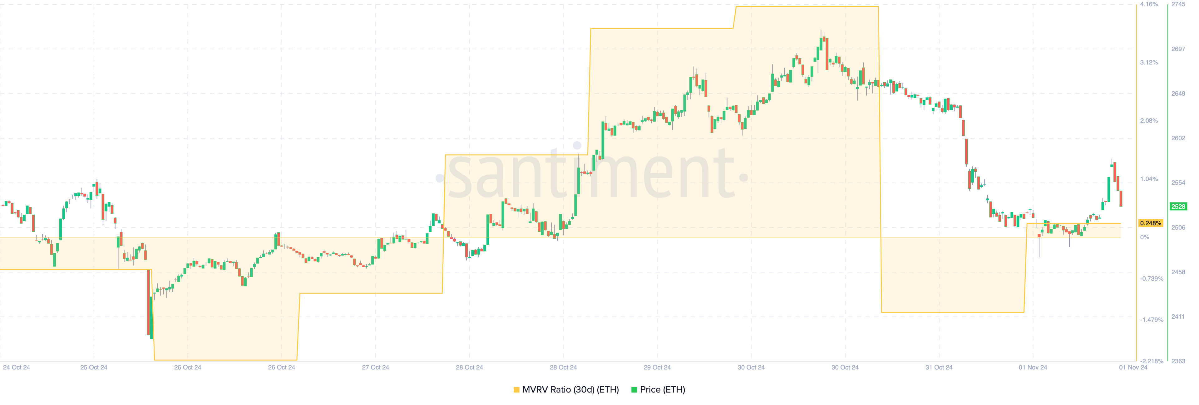SponsoredAs of now, Ethereum’s MVRV ratio has turned positive, a shift last seen in mid-October, which coincided with ETH’s price surge above $2,700. This historical pattern suggests that if the MVRV ratio continues to rise, we could see a similar upward movement in Ethereum’s price.