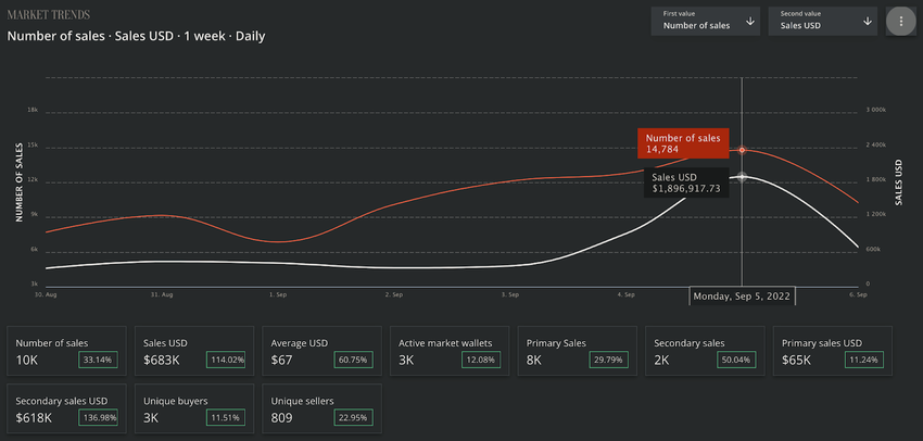 Meanwhile, data from NonFungible also revealed surging sales over the past week, peaking at $1,896 million in sales volume yesterday. The fast-approaching Merge upgrade for Ethereum scheduled next week has had a particularly marked effect on secondary sales, which have skyrocketed 137%.