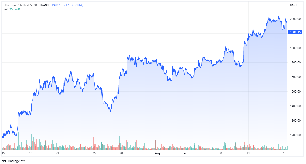 Ethereum should see its final merge on the mainnet next month, and the event is a highly anticipated one. It will be one of the biggest developments in Ethereum’s history, and the ETH token’s price has been affected positively by it.