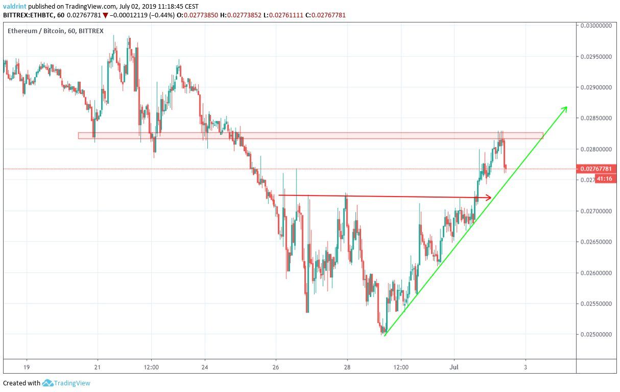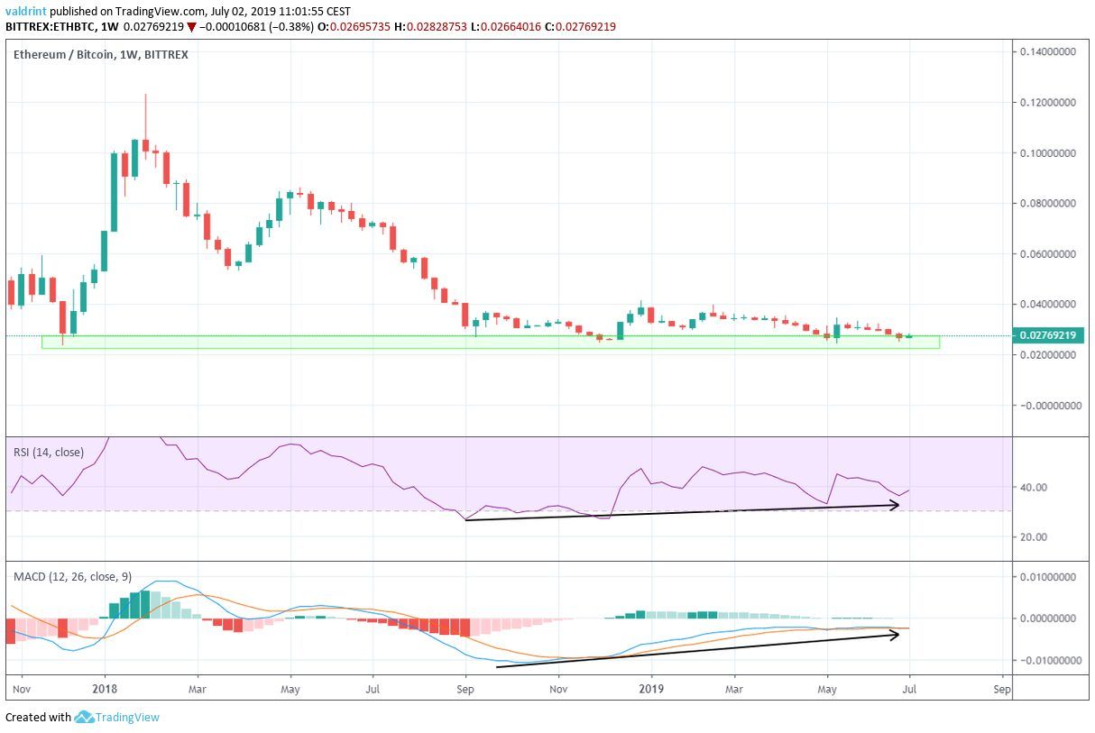 At the time of writing, the ETH price was trading near ₿0.027.
