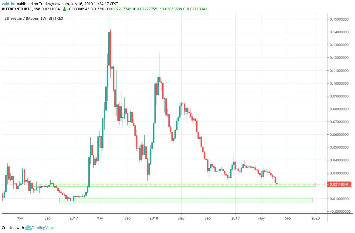 A look at the weekly time-frame shows that ETH is trading at its lowest levels since May 2017.