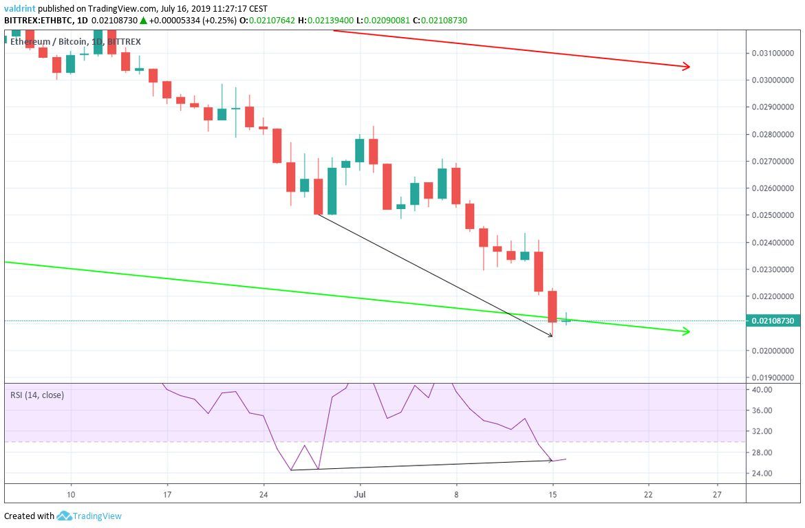 In the period from July 10-14, the Ethereum price traded between ₿0.0230 and ₿0.0245. A rapid decrease ensued on July 14. By the next day, ETH had reached lows of nearly ₿0.0205.