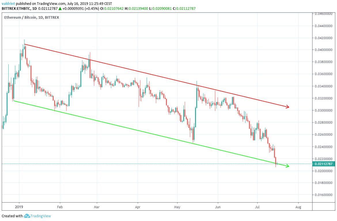 A look at the longer-term shows that the Ethereum price has been trading inside a descending channel since the beginning of 2019.